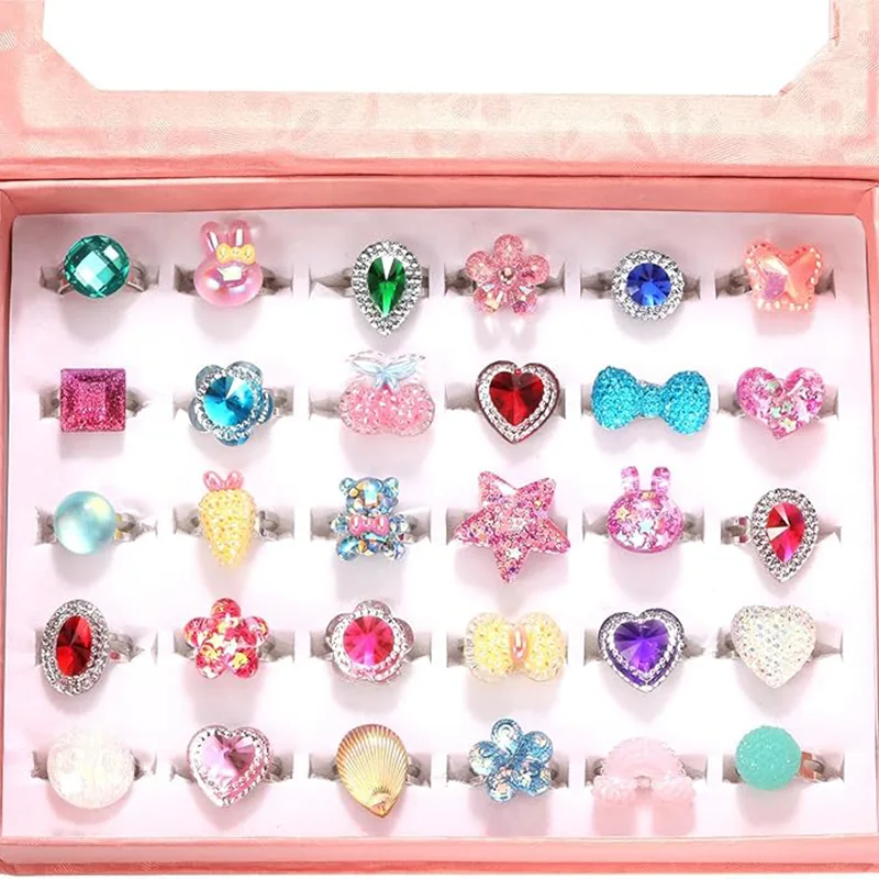 Unique Design - This set includes 30 different styles of imitation gemstone rings, which will surely captivate your child. These rings are made of transparent acrylic material and are dazzling. Uniquely designed as shown.