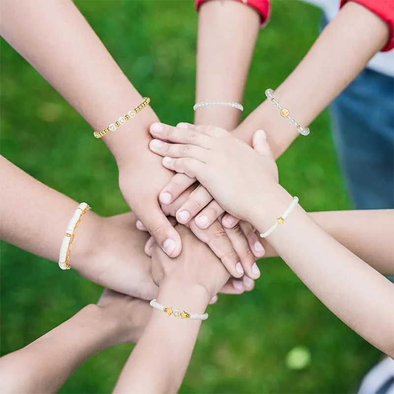 Cute teen girl bracelets includes 7 different styles of platinum bracelets. It integrates various special elements, such as smiling faces, stars, hearts and golden beads. Each bracelet has its own unique charm and is suitable for your diverse outfits.