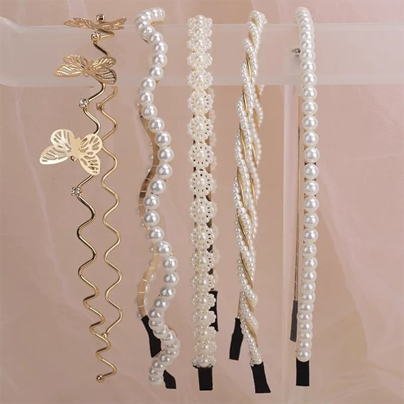 Different styles of hair bands are suitable for different occasions. You can wear a pearl hair band to a wedding or a formal dinner, and a crystal-decorated hair band to a party. They can also quickly add fashionable elements to casual wear or add a highlight to your bun. Flexible pearl beaded metal headbands can meet all your styling requirements!