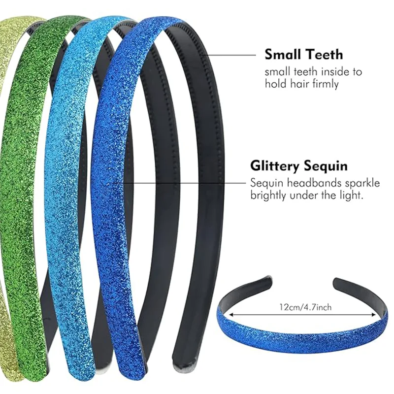 Multiple application scenarios: Glitter festivities dress up plastic headbands are suitable for various occasions, from casual wear to weddings, PROM, parties, etc. They are decorative hair bands that can add a touch of brightness to any style and are suitable for women, girls, teenagers and children.