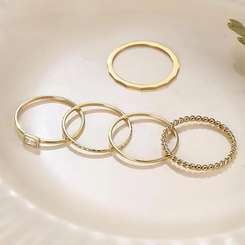 Simple stackable ladies' ring - Show your style - This gold and silver ring set contains five ultra-thin and exquisite rings, with various styles and a simple design. Worn alone, they can create an elegant and simple appearance, or worn together to showcase bold style. Perfect for stacking, mixing and matching, and styling options!